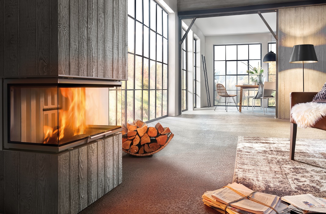 Ena izmed izjemnih lastnosti tega modela je tristansko steklo, ki omogoča panoramski pogled na ogenj iz različnih kotov, kar prispeva k edinstveni atmosferi v prostoru. Steklo je enoslojno in je zasnovano za enostavno čiščenje, saj se sprednje steklo med čiščenjem fiksira. Sistem dvižnega odpiranja stekla omogoča varno in enostavno upravljanje, medtem ko se ročaj pri odpiranju skrije v okvir, kar dodatno poudarja estetski videz kaminskega vložka.